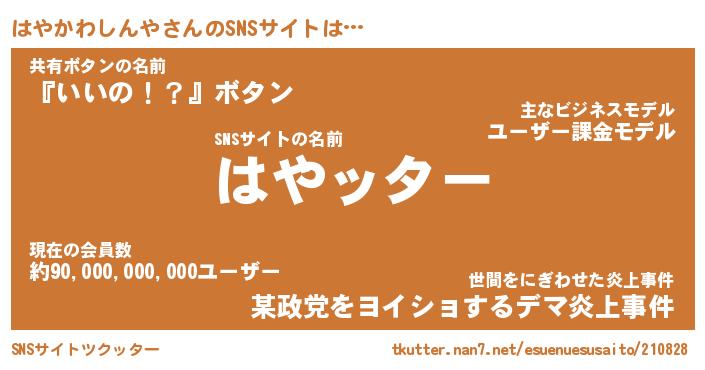 | 胡散臭い通販商品みたいなあだ名 | 『億万長者になれる霊験あらたかなお札…その名も「はやかわしんや」』 |