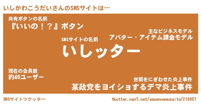 | 肩書あだ名 | 『いしかわこうだい御曹司』 |