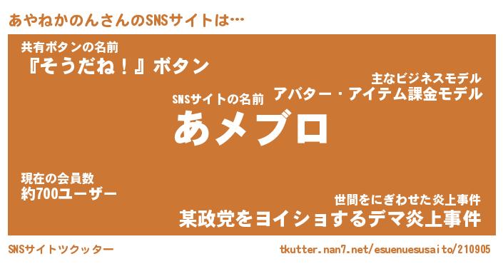 | 男性向けラノベタイトル風あだ名 | 『アヤネカノンアートオンライン』 |