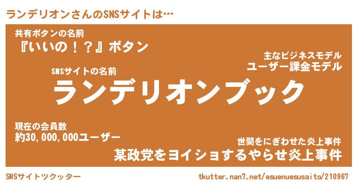 | 男性向けラノベタイトル風あだ名 | 『ランデリオンアートオンライン』 |