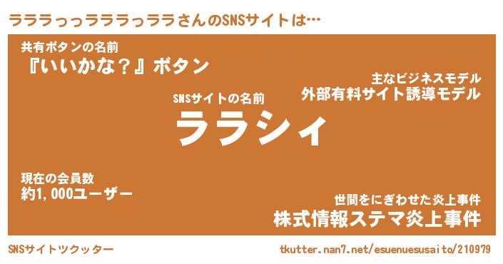 | ファンタジー風あだ名 | 『ララフェル』『ファントムララス』 |