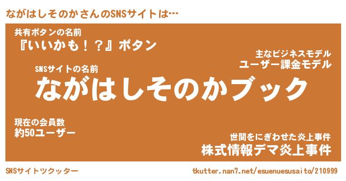 | 伝説のあだ名 | 『封印されし傭兵ながはしそのか』 |