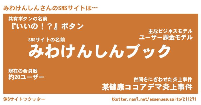| 胡散臭い通販商品みたいなあだ名 | 『億万長者になれる霊験あらたかなお札…その名も「みわけんしん」』 |