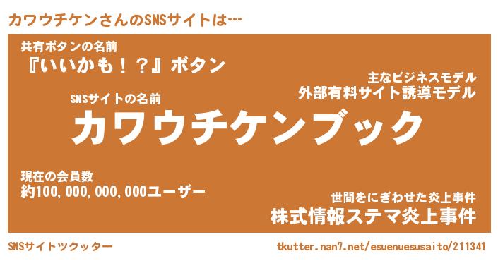 | 男性向けラノベタイトル風あだ名 | 『カワウチケンアートオンライン』 |