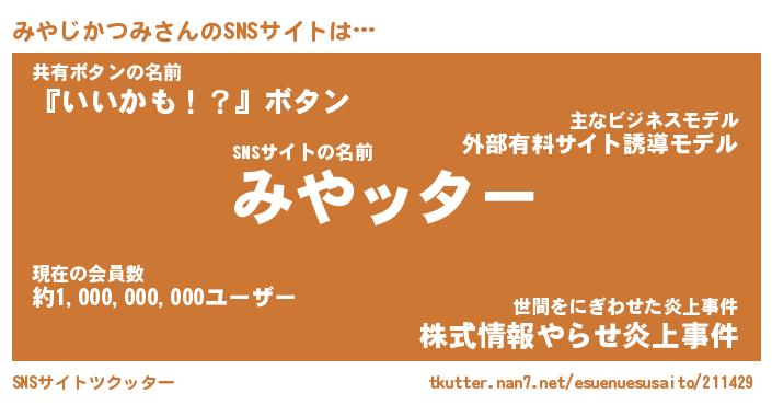 | 肩書あだ名 | 『みやじかつみ社長』『みやじかつみ塾長』 |