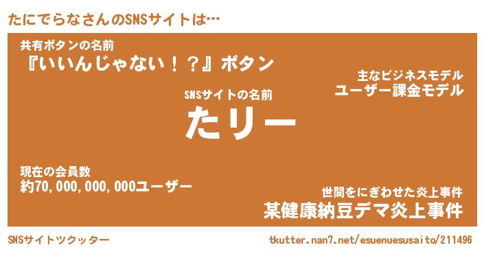 | ファンタジー風あだ名 | 『タニフェル』『エターナルタニデラナー』 |
