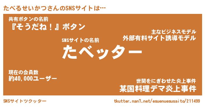 | 男性向けラノベタイトル風あだ名 | 『タベルセイカツアートオンライン』 |