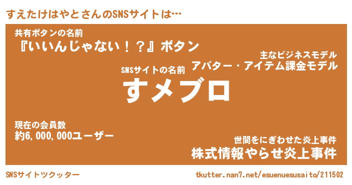 | ツイッター | すえたけはやとさんのツイッターID『katatsumuri_nyan』 |