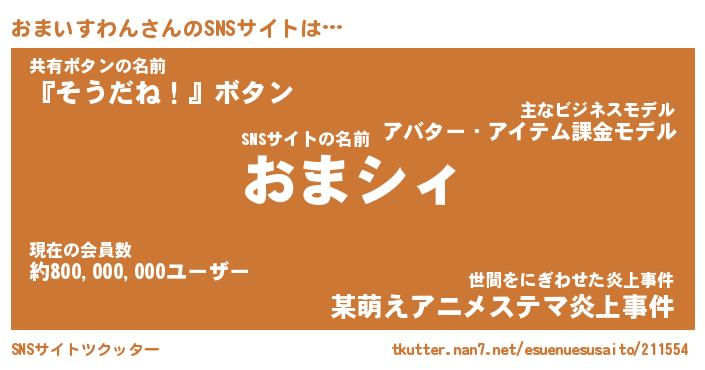 | 男性向けラノベタイトル風あだ名 | 『おまいすわんの憂鬱』 |