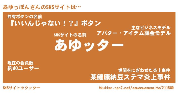 | 男性向けラノベタイトル風あだ名 | 『アユッポンアートオンライン』 |
