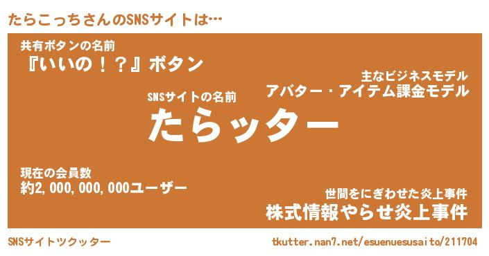 | 胡散臭い通販商品みたいなあだ名 | 『億万長者になれる霊験あらたかなお札…その名も「たらこっち」』 |
