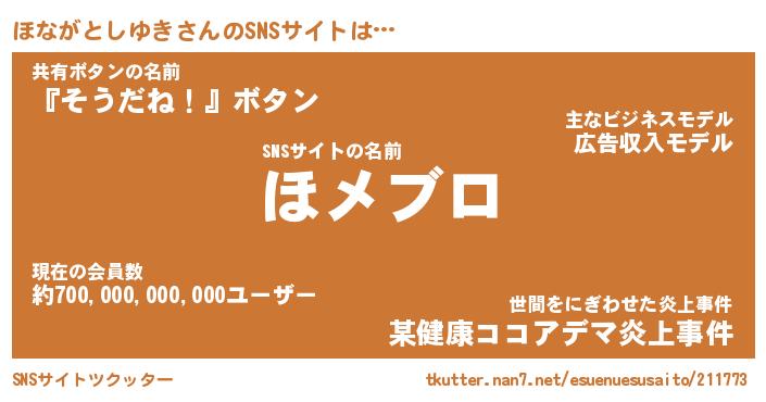 | ツイッター | ほながとしゆきさんのツイッターID『dendenmushi_kun』 |