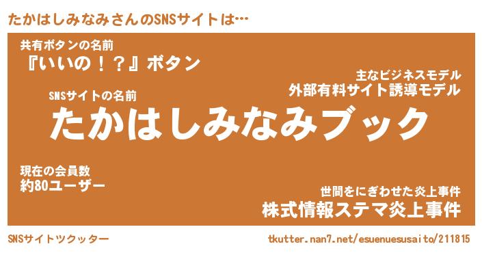| 胡散臭い通販商品みたいなあだ名 | 『億万長者になれるブレスレット…その名も「たかはしみなみ」』 |