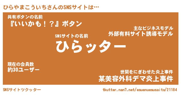 | 胡散臭い通販商品みたいなあだ名 | 『億万長者になれる水晶球…その名も「ひらやまこういち」』 |