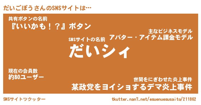| 肩書あだ名 | 『だいごぼう店長』『だいごぼう国家主席』 |