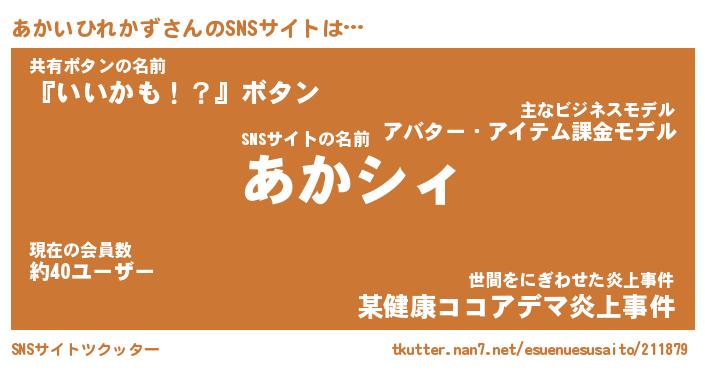 | ヘコむあだ名 | 『あかにー』『豆乳』『あかっぺ』 |