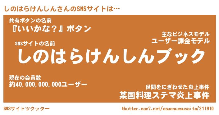 | 欧米人風あだ名 | 『マイケルしのはらけんしん』 |