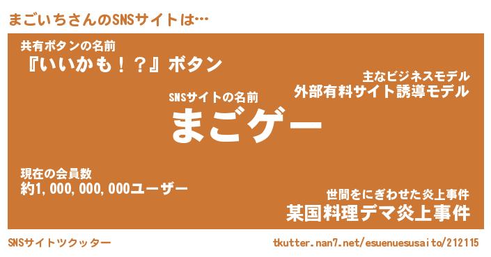 | 意味不明あだ名 | 『ペロリンまごいち』『永久保存まごいち』 |