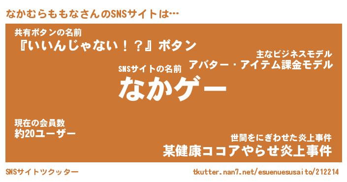 | 男性向けラノベタイトル風あだ名 | 『なかむらももなの憂鬱』 |