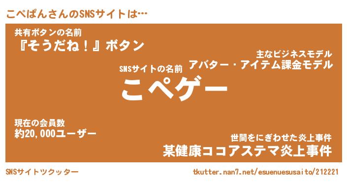 | 欧米人風あだ名 | 『マイケルこぺぱん』『ウサインこぺぱん』 |