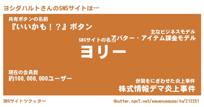 | 肩書あだ名 | 『ヨシダハルトCEO』『ヨシダハルト先生』 |