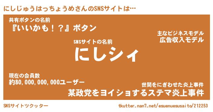 | ポケモン風あだ名 | 『ニシチュウ』『ニシジダネ』 |