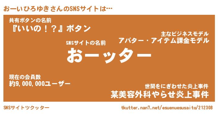| 欧米人風あだ名 | 『マイケルおーいひろゆき』 |