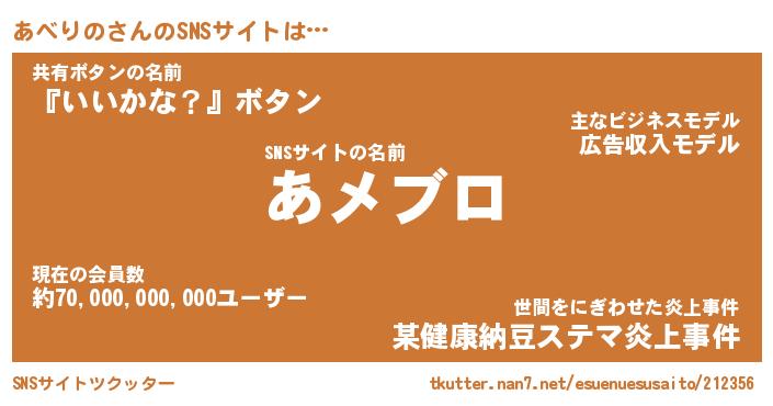 | 意味不明あだ名 | 『ペロリンあべりの』『永久保存あべりの』 |