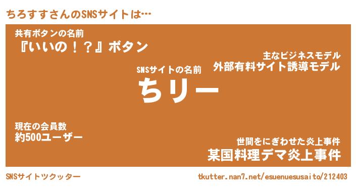 | 意味不明あだ名 | 『ペロリンちろすす』『永久保存ちろすす』 |