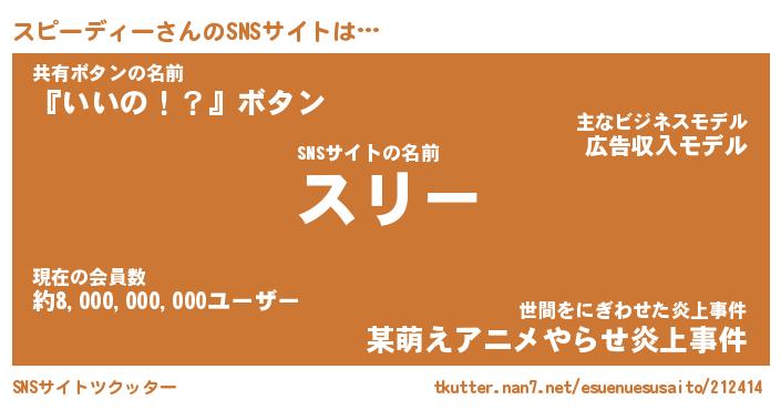 | 男性向けラノベタイトル風あだ名 | 『スピーディーの憂鬱』 |