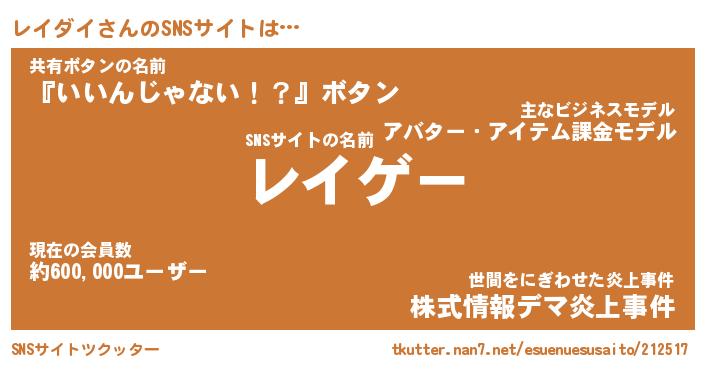 | 意味不明あだ名 | 『ペロリンレイダイ』『永久保存レイダイ』 |
