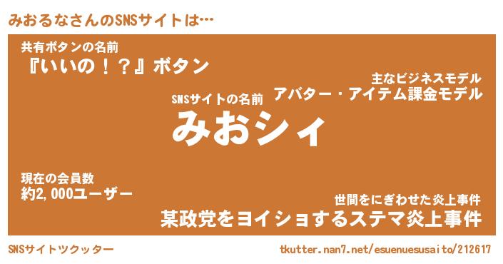 | ヘコむあだ名 | 『みおふぇ~』『レバニラ』『みおを』 |