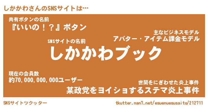 | 肩書あだ名 | 『しかかわCEO』『しかかわ国家主席』 |