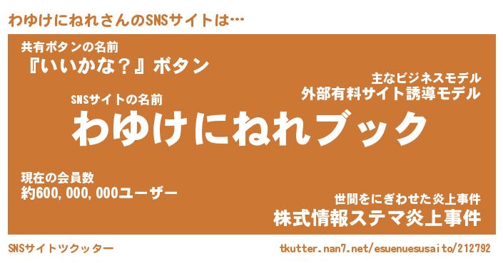 | 肩書あだ名 | 『わゆけにねれ社長』『わゆけにねれ団長』 |