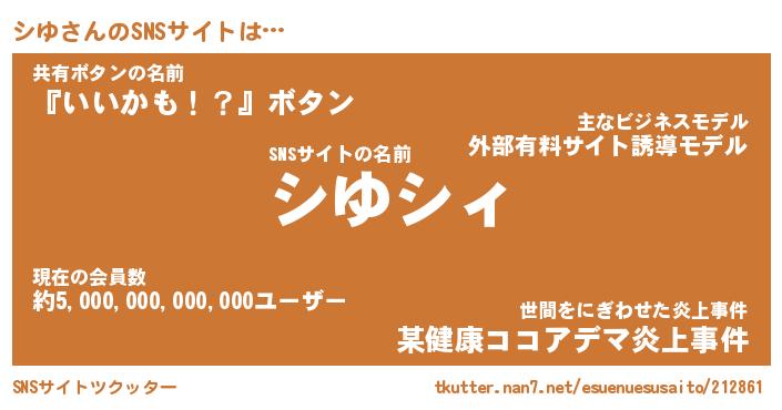 | ヘコむあだ名 | 『シゆもー』『酢こんぶ』『シゆ(笑)』 |