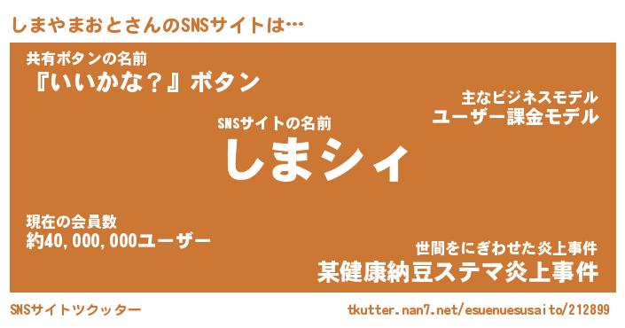 | 肩書あだ名 | 『しまやまおとCEO』『しまやまおと大統領』 |