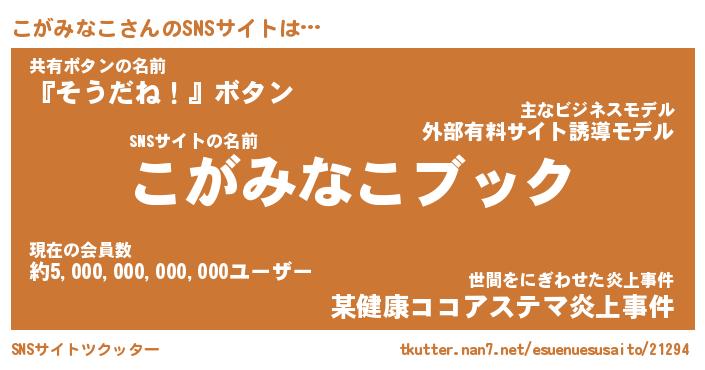 | 胡散臭い通販商品みたいなあだ名 | 『億万長者になれる水晶球…その名も「こがみなこ」』 |