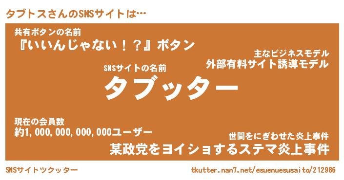 | 胡散臭い通販商品みたいなあだ名 | 『億万長者になれるブレスレット…その名も「タブトス」』 |