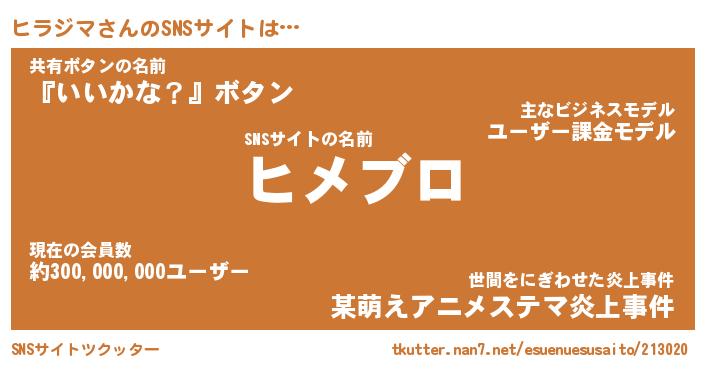 | 男性向けラノベタイトル風あだ名 | 『ヒラジマアートオンライン』 |