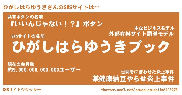 | 肩書あだ名 | 『ひがしはらゆうき社長』 |