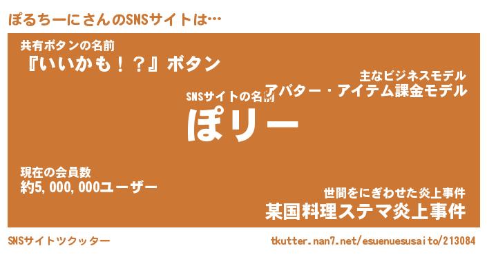| 料理風あだ名 | 『節約★ぽるちーにと油揚げの玉子丼』 |