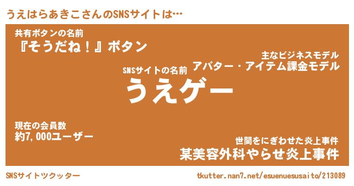 | ヘコむあだ名 | 『うえっふぃ~』『豆乳』『うえ太郎』 |