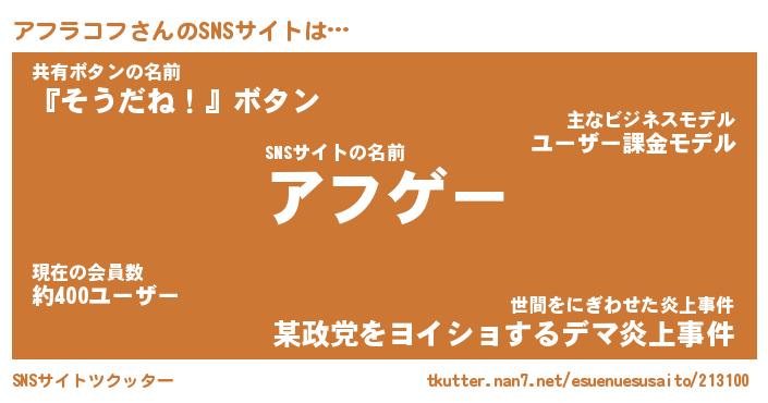 | ヒーロー風カッコイイあだ名 | 『スーパーアフラコフ』『暗黒騎士アフ』 |