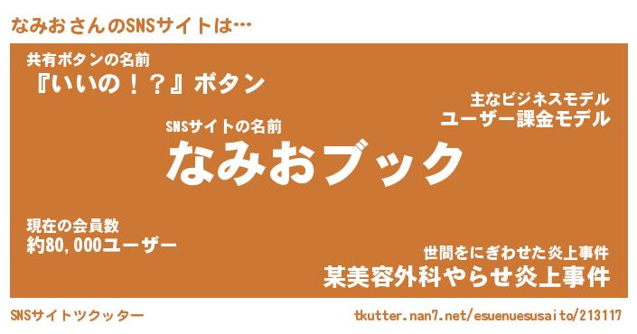 | ヘコむあだ名 | 『なみにゅー』『なまこ酢』 |