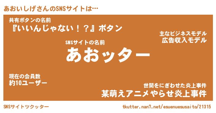 | 男性向けラノベタイトル風あだ名 | 『アオイシゲアートオンライン』 |