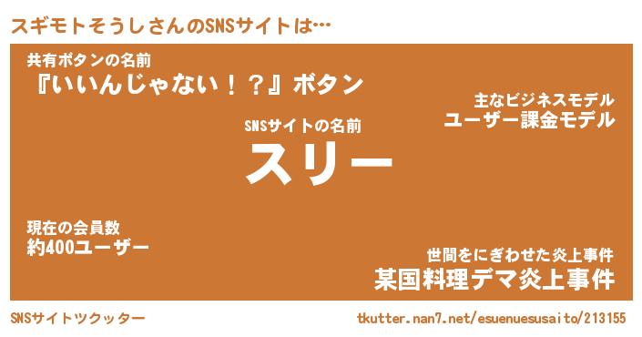 | ヘコむあだ名 | 『スギもー』『豆乳』『スギぷりん』 |