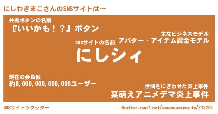 | ファンタジー風あだ名 | 『ニシフェル』『ファントムニシス』 |