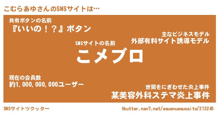 | 女子向けラノベタイトル風あだ名 | 『こむらあゆ姫と円卓の騎士』 |