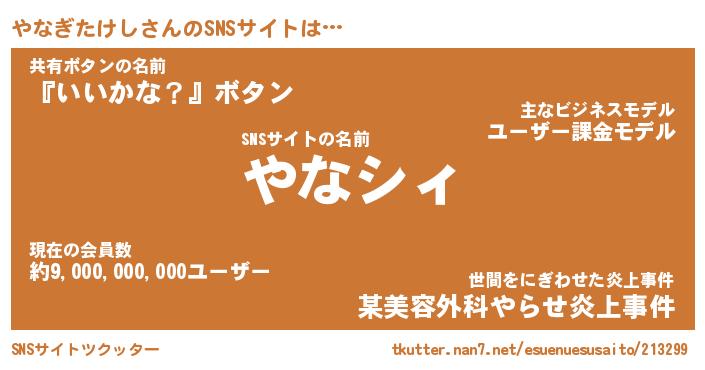 | 男性向けラノベタイトル風あだ名 | 『やなぎたけしの憂鬱』 |
