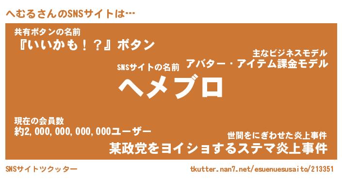 | 男性向けラノベタイトル風あだ名 | 『ヘムルアートオンライン』 |